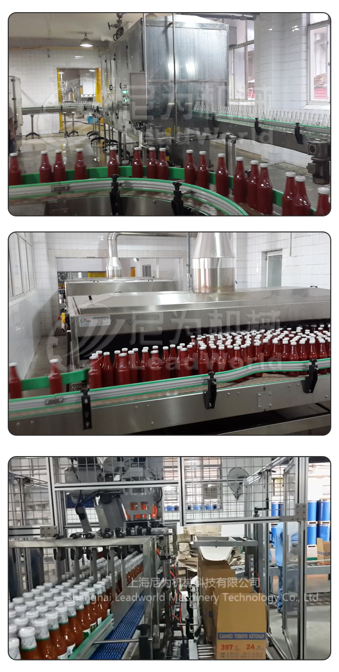 果醬、番茄沙司灌裝線廣泛應用于番茄醬、甜醬、花生醬、芝麻醬、沙茶醬等,可以灌裝各種規格的玻璃瓶、塑料瓶、馬口鐵罐等。