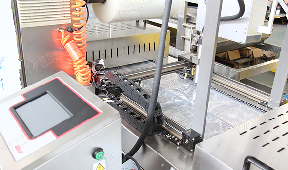 不用事前訂制包裝盒子,集塑料薄膜拉伸成形,填裝物料、真空包裝和氣調、熱封、分割等功能于一體,具有省時省力、耗能低、周期時間短、經濟效益高等特性。