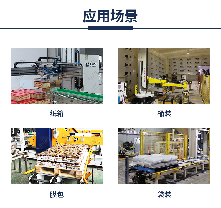 4. 自動化程度高。LWT碼垛機設備采用可編程運動控制器,能對紙箱的分揀、堆垛層數、托盤的供給和排出等關鍵動作進行編程控制,實現自動化生產和處理過程。